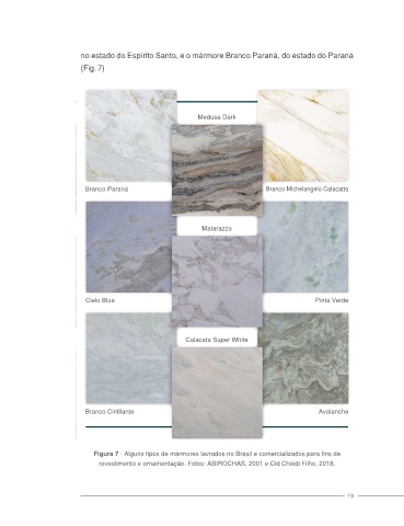 Figura 7 - Alguns tipos de mármores lavrados no Brasil e comercializados para fins de