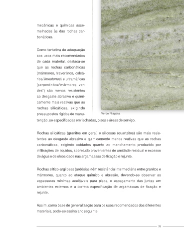 mármores, quanto ao ataque químico e abrasão, devendo-se observar as