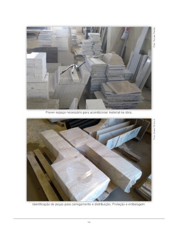 Foto: Renato Paldês. Prever espaço necessário para acondicionar material na obra. Foto: Alvaro Cintra Jr. Identificação de peças para carregamento e distribuição. Proteção e embalagem. 14